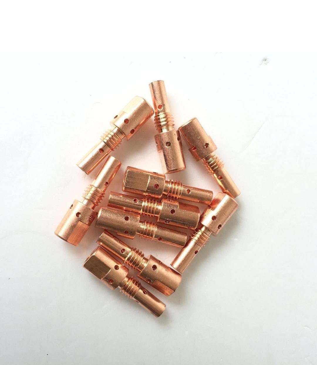 The 25AK Tip Holder is a vital component of MIG welding torches, designed to hold the contact tip firmly in place while ensuring consistent electrical conductivity. It plays a crucial role in maintaining arc stability, weld quality, and torch performance. Engineered with precision and made from high-quality brass, the 25AK Tip Holder is ideal for medium to heavy-duty welding applications, making it a preferred choice for welders across fabrication, automotive, and construction industries.